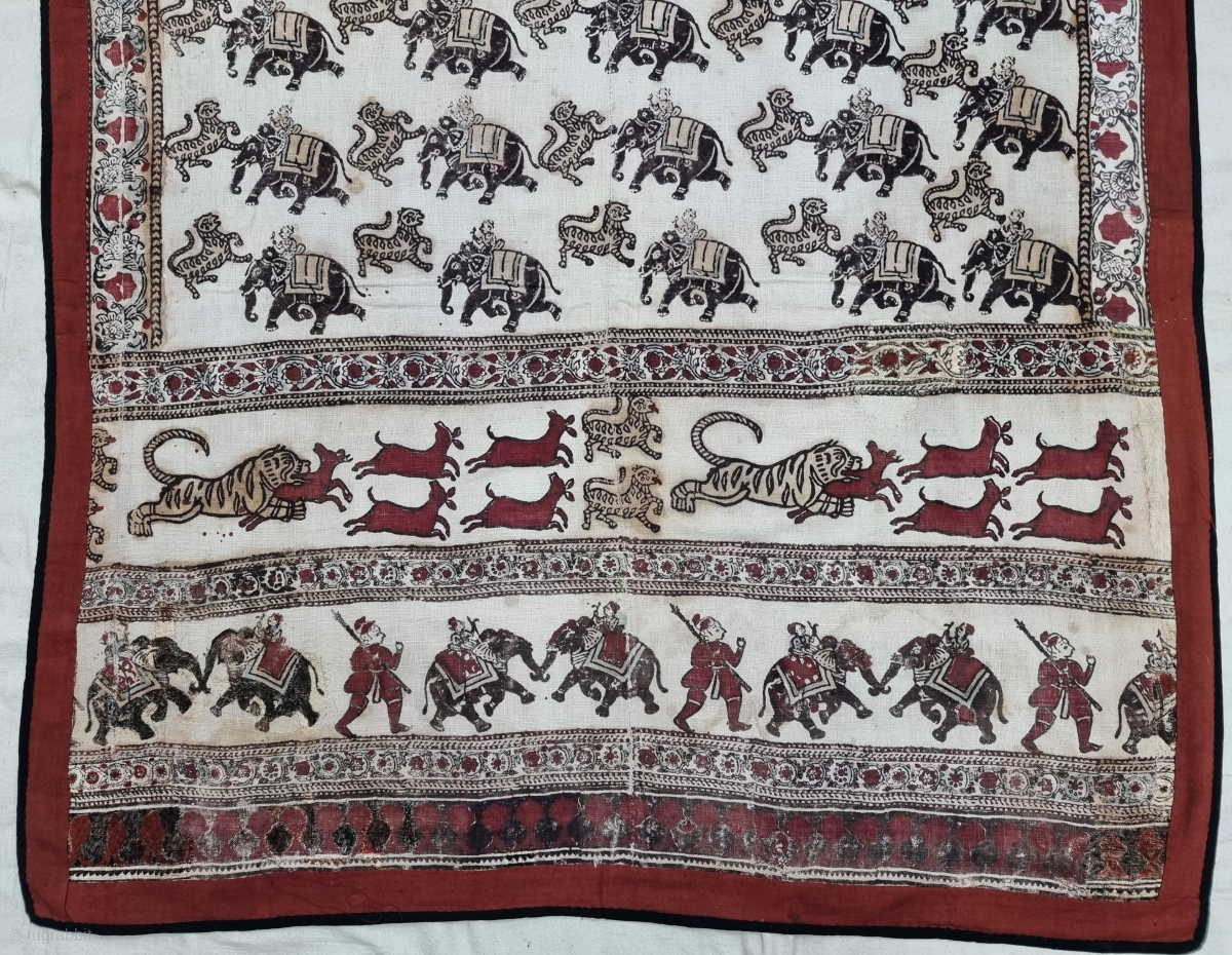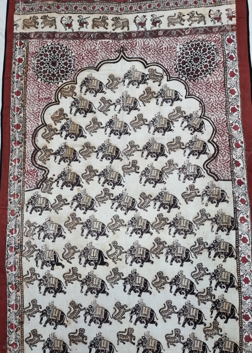 Tent Panel of Kalamkari and Block Print And Hand Painted Cotton , Hand-Drawn, Mordant- And Resist-Dyed Cotton, From Deccan Region of South, India. India.
