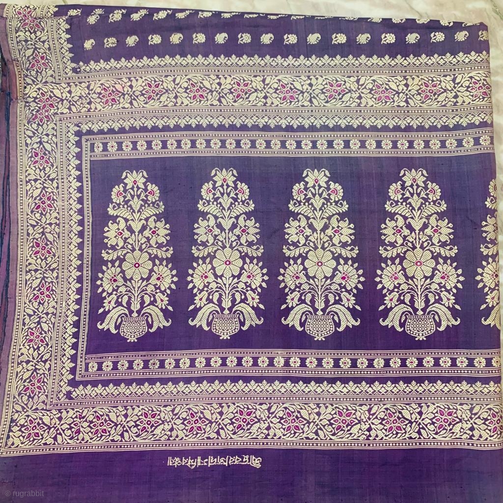 Vintage signature Baluchuri sari of sridubrajdas the master weaver of baluchari sari from baluchar village of west Bengal India. the sari condition is good but repaired in couple of places professionally the sari material is in very good condition the size of the sari is 430 cms x 120 cms