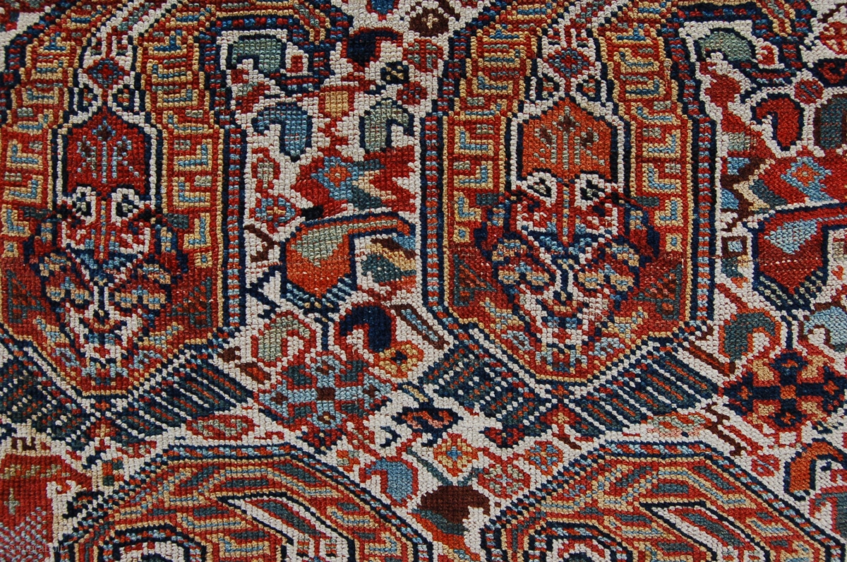 Antique Khamseh small rug 104 x 76 cm (3ft 5" x 2ft 6") last quarter 19th century. All natural dyestuffs, handspun yarns, good condition, evenly low pile