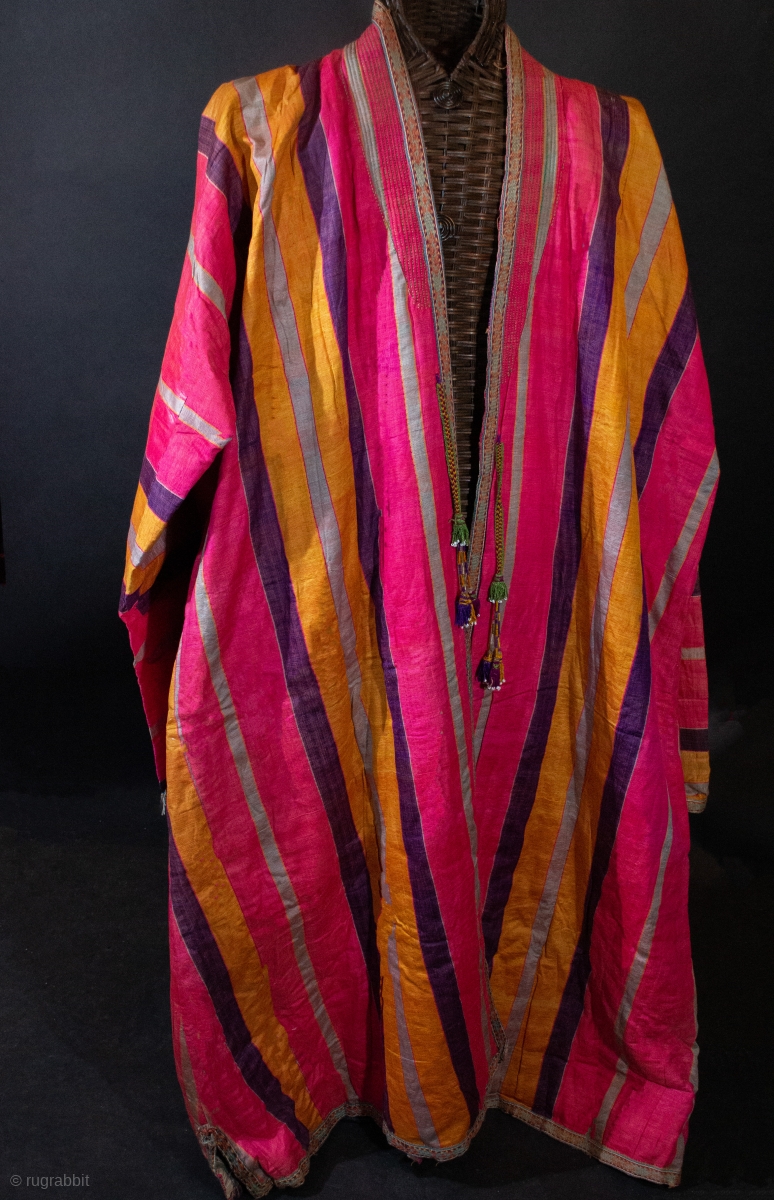 Beautiful early 20th c striped Bukhara coat in wonderful condition. see singkiang.shop for purchase.