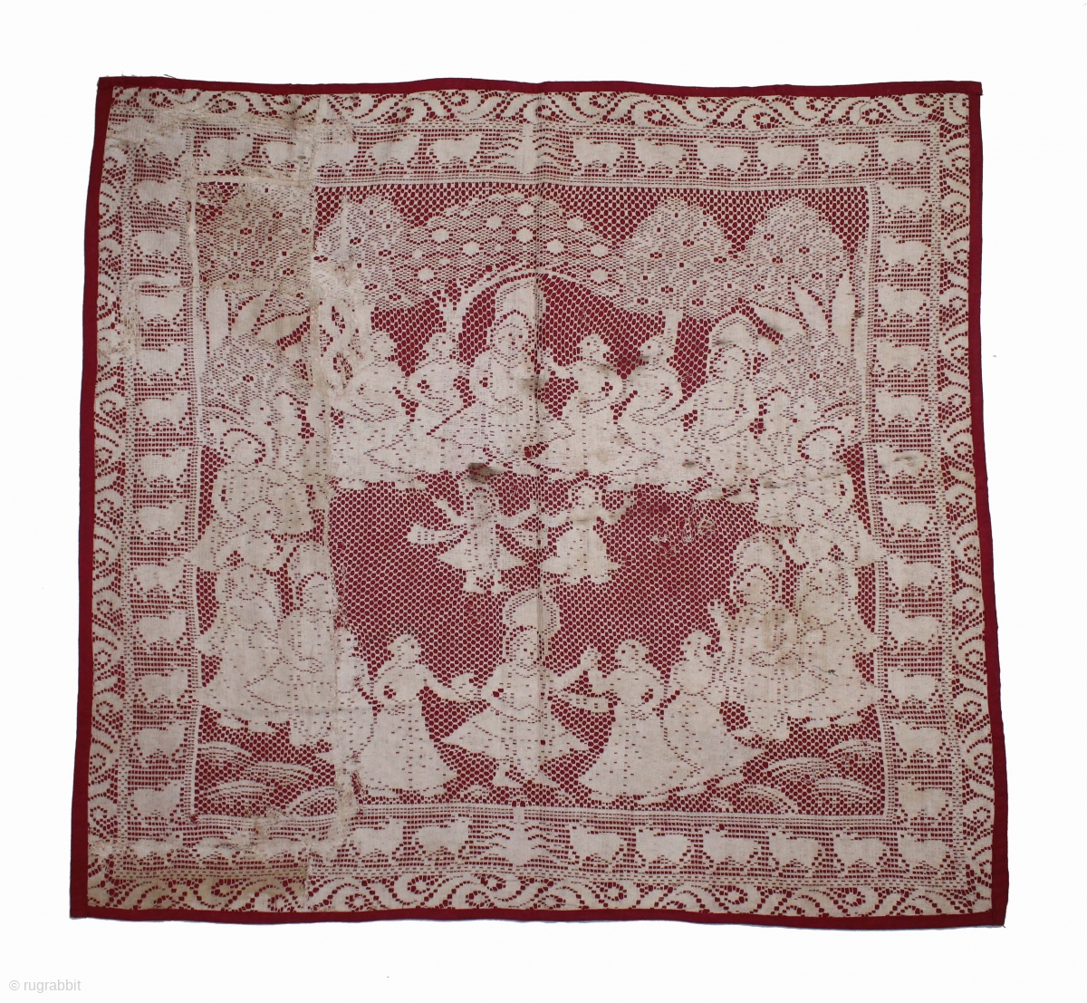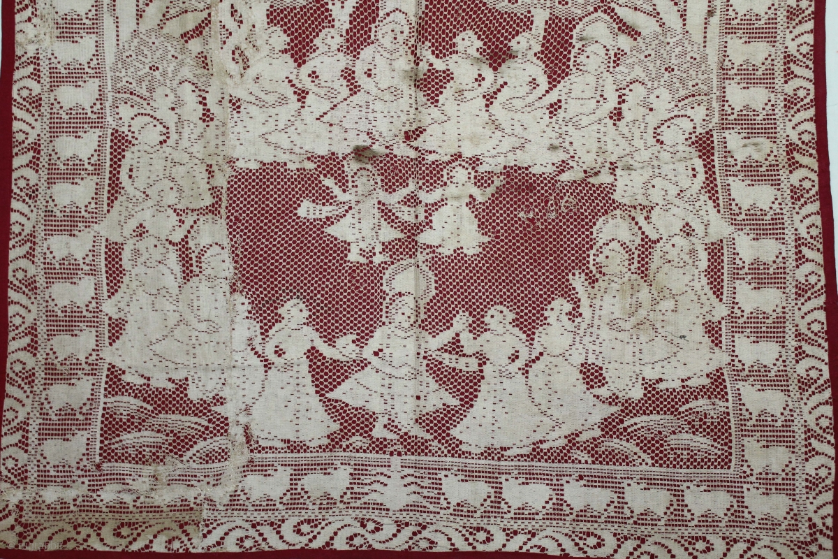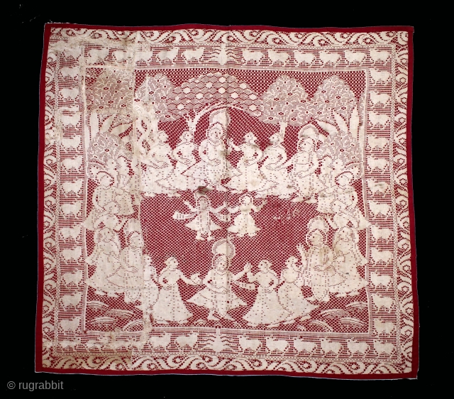 Pichwai of Cotton Lace Net,of Raas From Germany,Made for Indian Market C.1900.Its size is 75cm x 80cm.(DSLE05310).