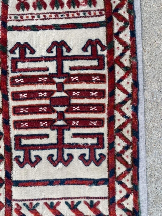 Two 19th century Turkmen tentband fragments from the same tentband, possibly mid 19th. 10"x 21" and 10" x 16". Nice green