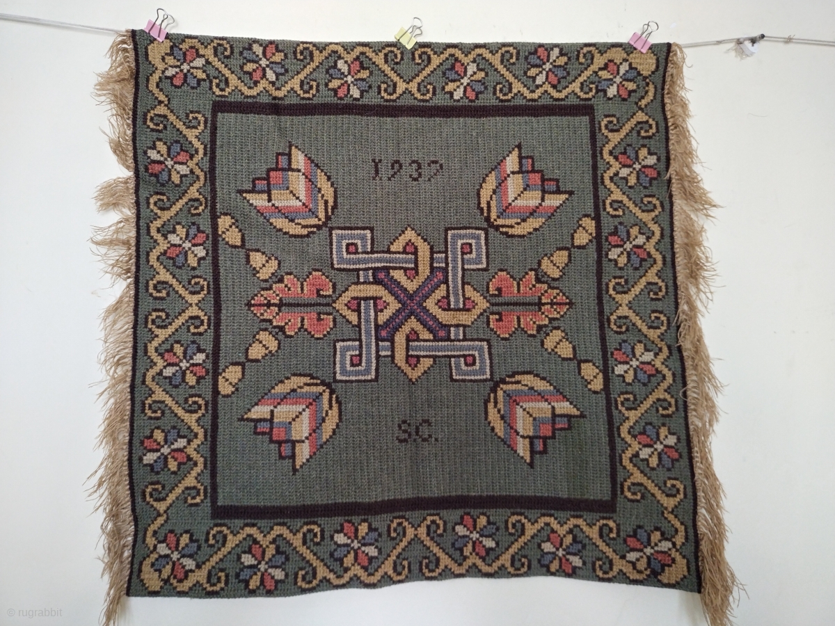Antique swedish Scandinavian needle point embroided crosstich small panel