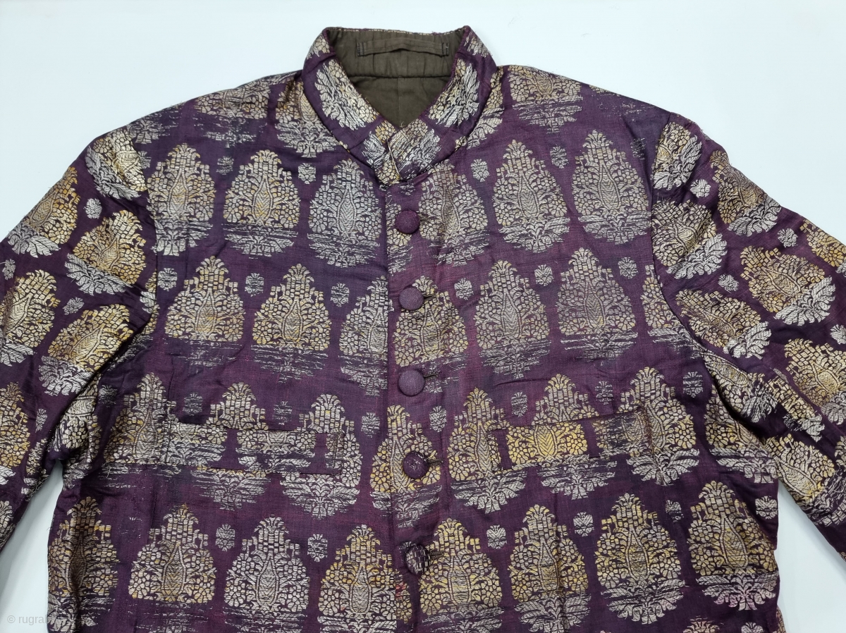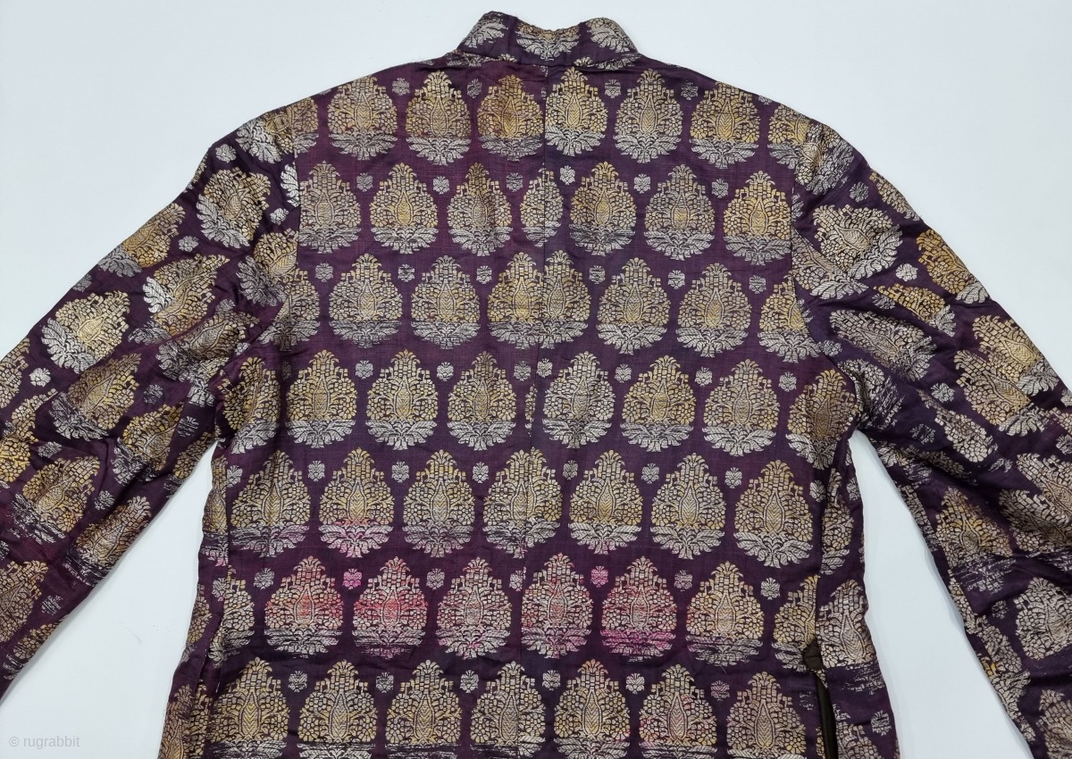 An very Unique Achkan (Coat) Real Zari Brocade (Real Zari) With Fine Floral Butas in Weaving on Gold and Silver Thread Lined with Cotton From the Varanasi Uttar Pradesh, India.