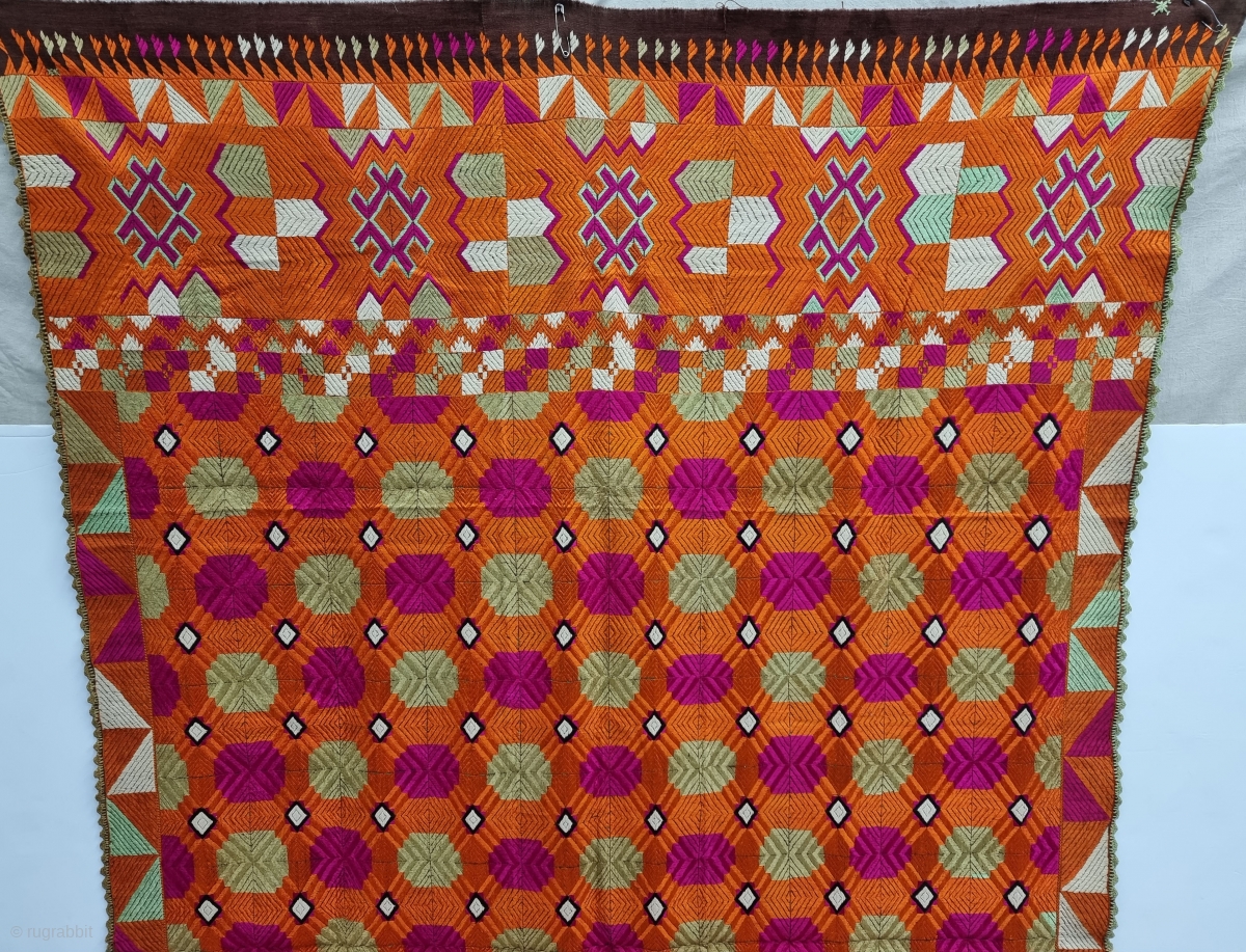 An Unique Bagh-Phulkari From East (Punjab) India. Floss Silk on Hand Spun Cotton khaddar Cloth.