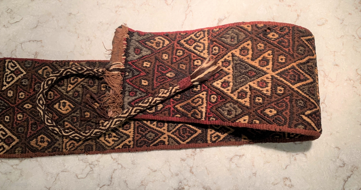 Interesting Pre-Columbian b complete belt or Headband. i am not sure of it's intended use. Very good condition with original woven ties. 29 x 5 inches. Accepting offers Contact at grtex131@gmail.com.