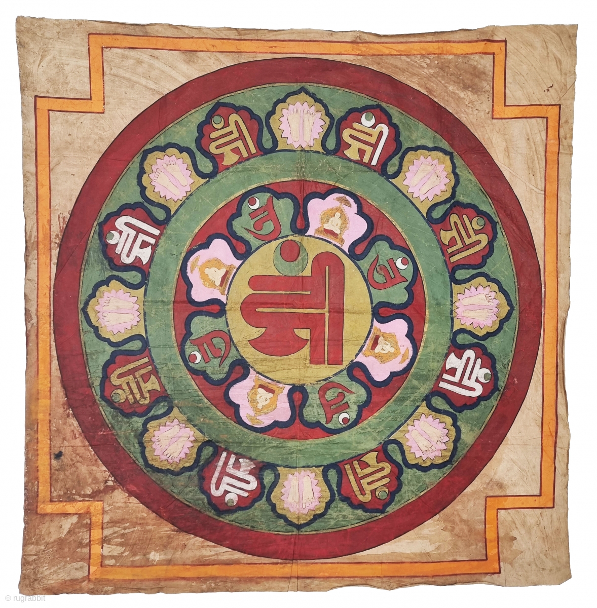 An unique Siddhachakra from Jain Cosmology, Hand Painted On the Cotton,