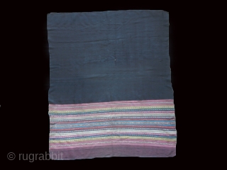 a fine woman’s matrimonial overskirt woven in the large style common to when such garments were worn as full dresses not skirts, the replaceable and subordinate top half is a 19th century replacement of an earlier version witnessed by the ribete edge cutting and change of color and fineness and also by the panel join done in the 19th century invisible saddle stitch style. Beautiful and traditional color format with a complex double cloth center design stripe. Good condition. Collected by Jonathan Hill in La Paz in 1975.