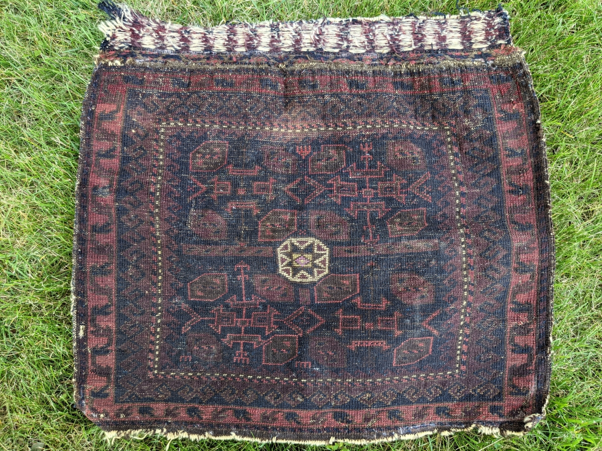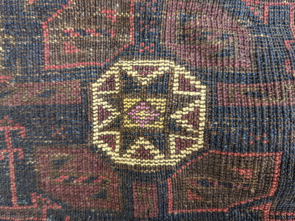 Old and very fine Timuri Baluch chanteh face. Dark colors, silk, and an intriguing piece. 1'7" x 1'9". Please contact me at: steven.malloch@gmail.com or gerrerugs@gmail.com