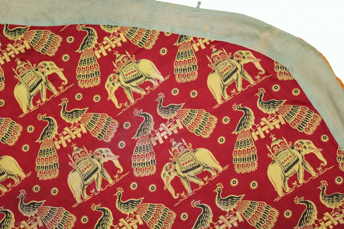 Pichwai Manchester Print of Elephant And Peacock's From Manchester England made for Indian Market. Roller Printed on Cotton.C.1900.Its size is 88cm x 152cm.(DSC05540).