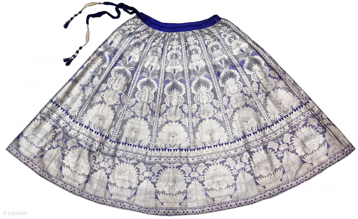 Wedding Lehenga (Skirt) Zari (Real Silver) Brocade From Varanasi, Uttar Pradesh. India.Known As Marwadi Lehenga. its has Fourteen KaliThe lehenga is fashioned from silk and real gold-polished silver zari. The silk is a deep purple while the intricate embroidery is of a gold-hue; the lining is of cotton .