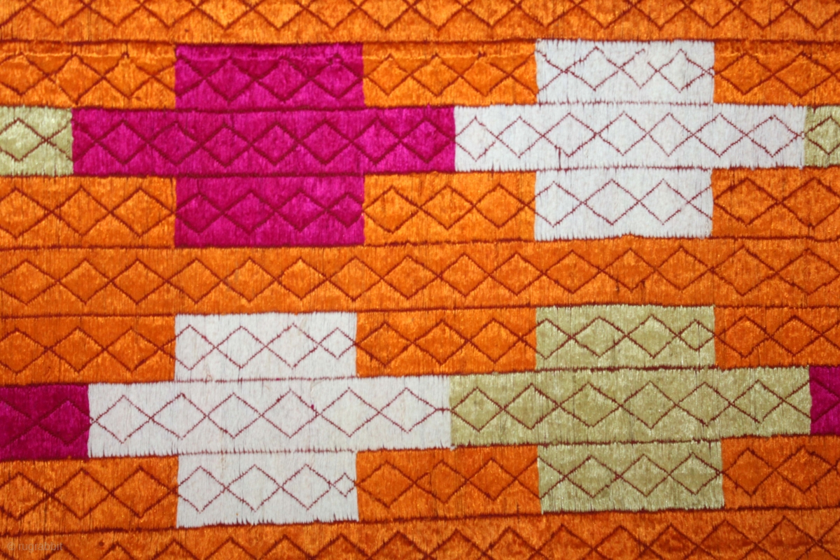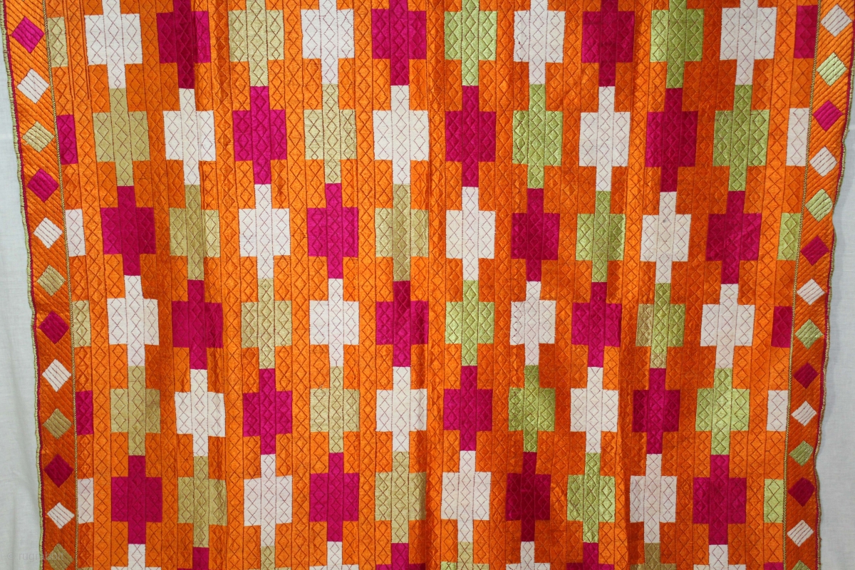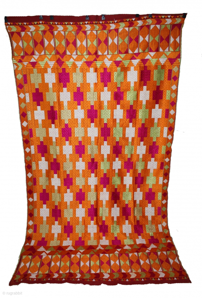 Phulkari From East(Punjab)India Called As Belan Motif Bagh.C.1900. Rare Design. Floss Silk on Hand Spun Cotton khaddar Cloth. Its size is 134cm x 240cm.(DSC05610).