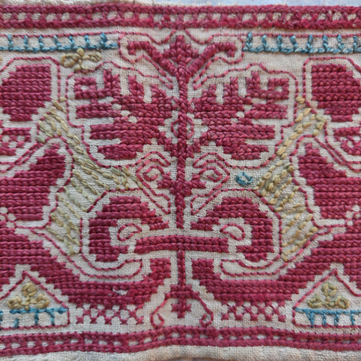 18th century Ionian Greek island embroidery, section of a cuff with an Italianate oak leaf and acorn meander.