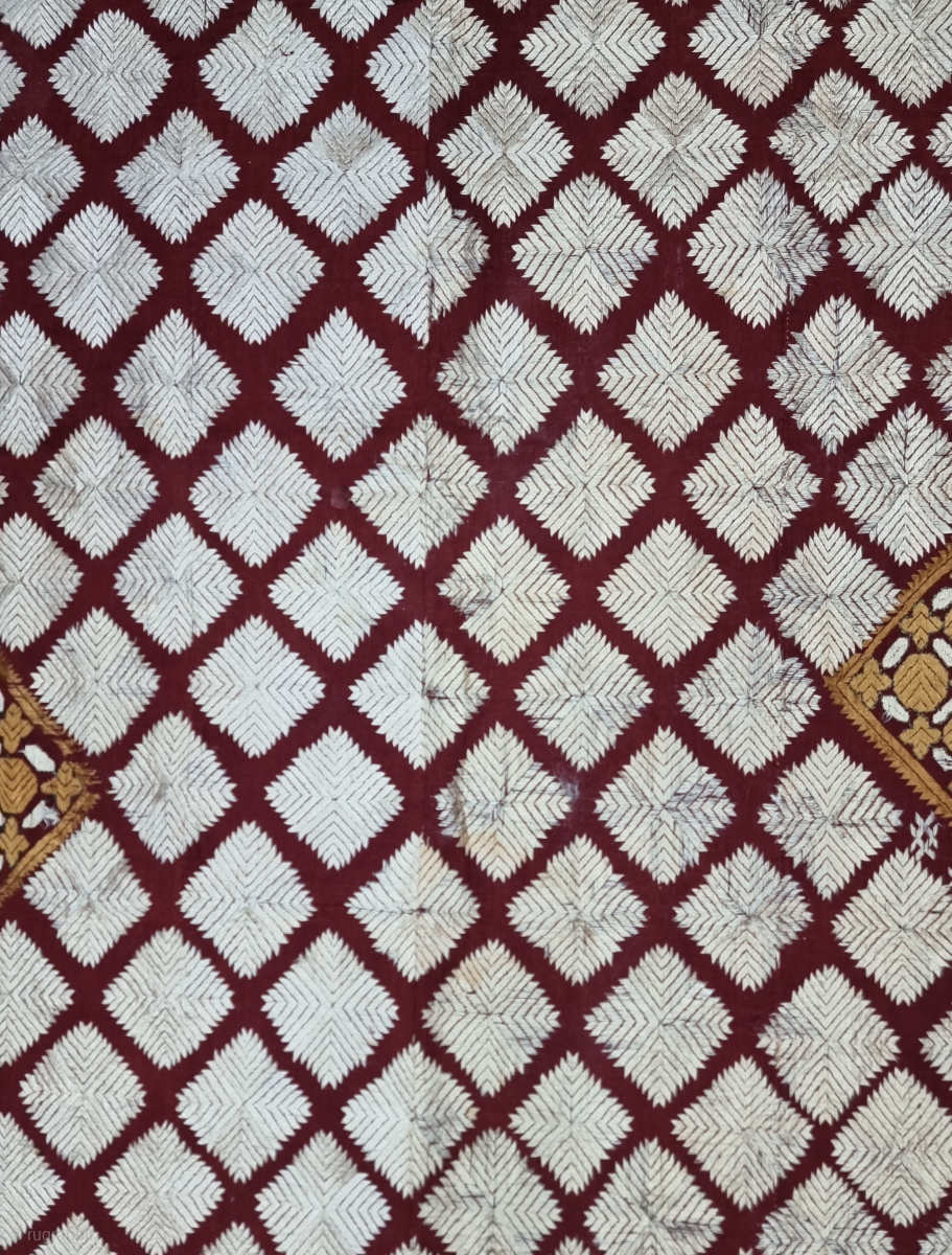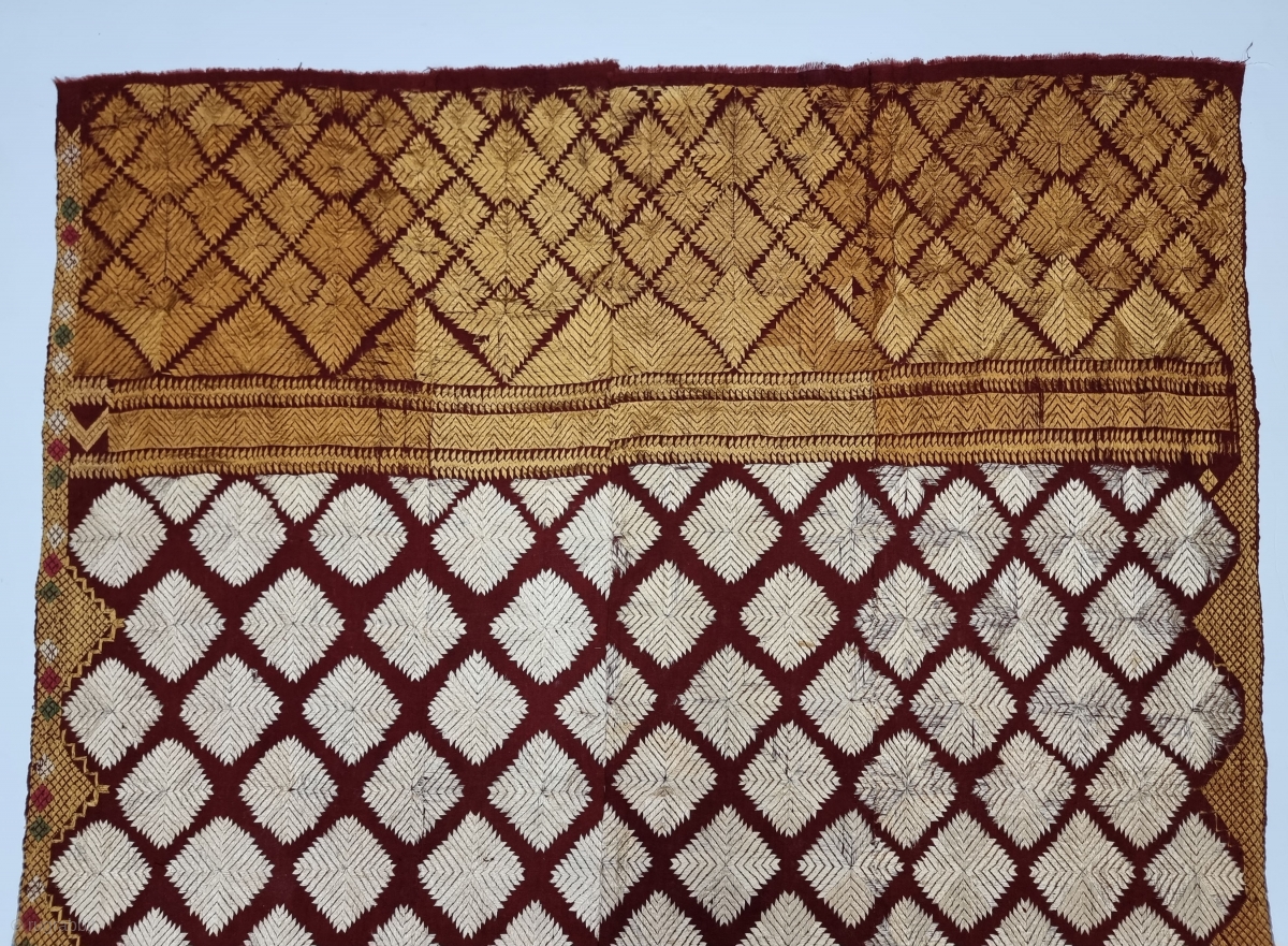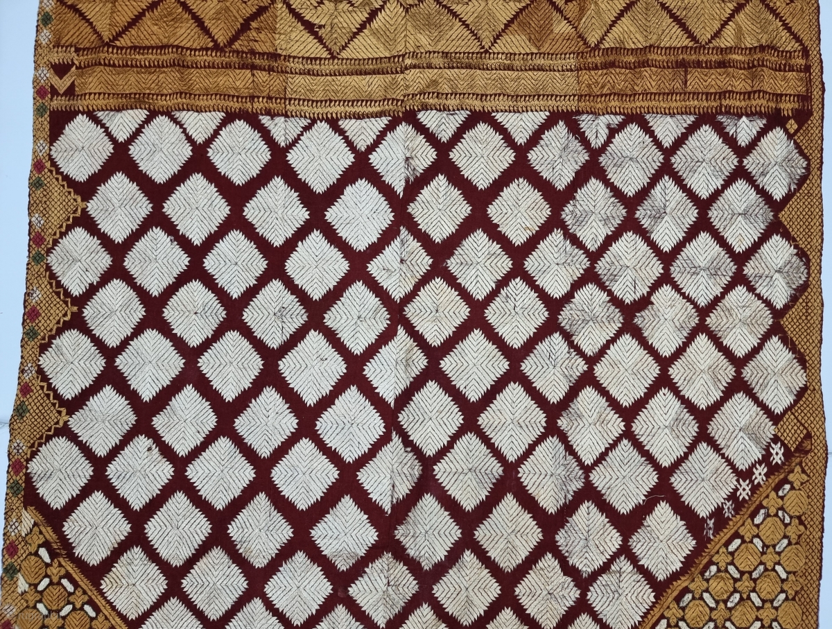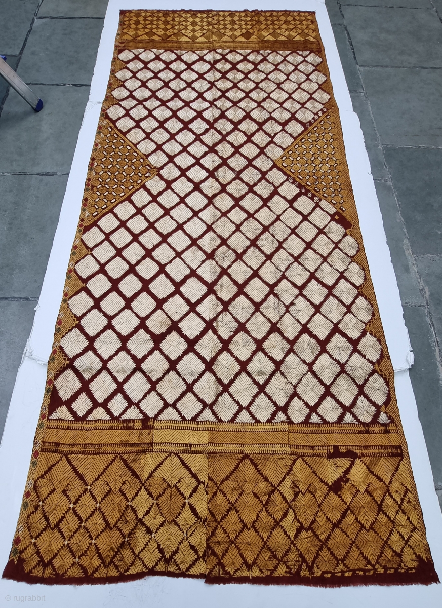 Chand Bagh with Ghunghat Phulkari From West(Pakistan) Punjab. India. India. untwisted Floss silk on hand spun (Halwan) cotton ground cloth.