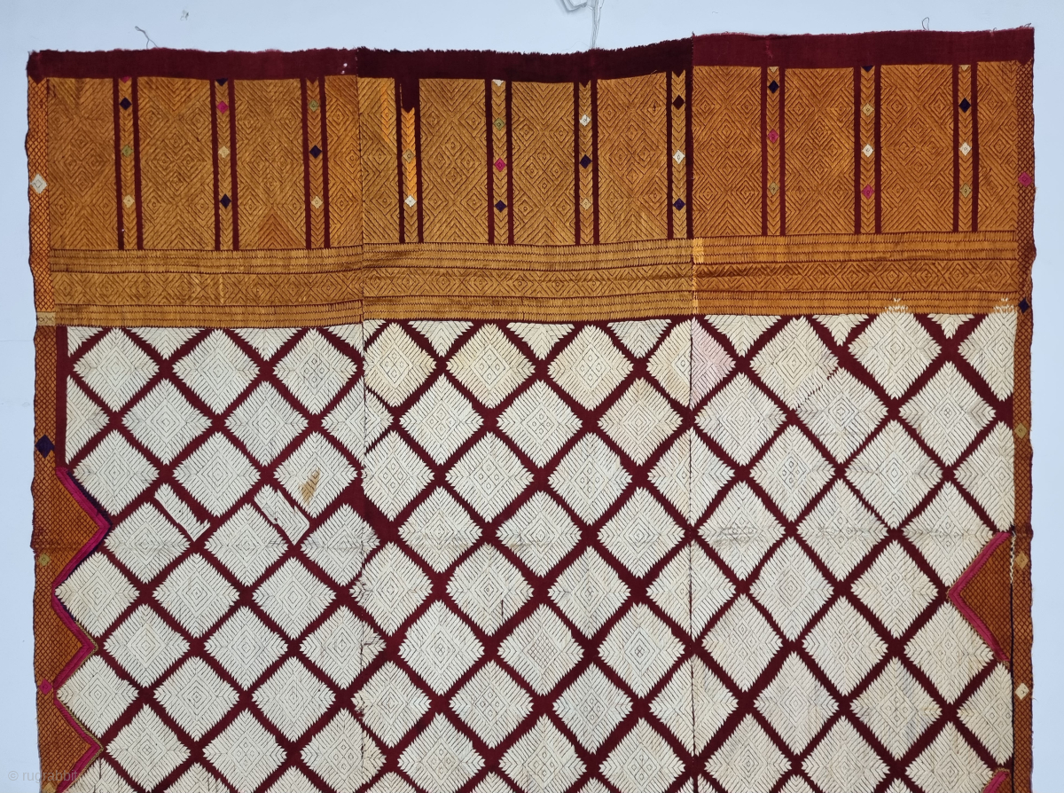 Chand Bagh , Phulkari From West(Pakistan) Punjab. India. India. untwisted Floss silk on hand spun (Halwan) cotton ground cloth.