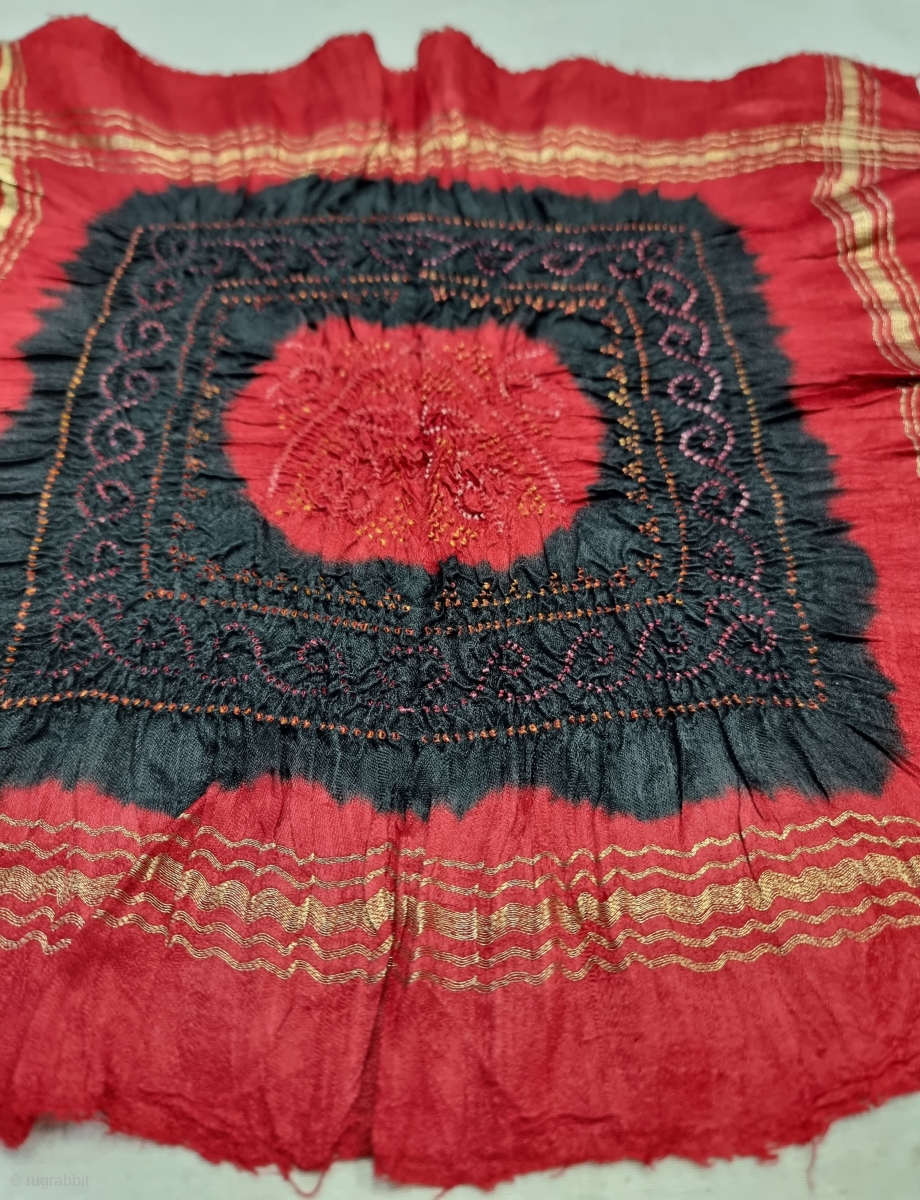 Rumal for the Groom, Tie and Dye Work on the Gajji-Silk With Real Zari Weaving Side Border, From Kutch Region of Gujarat, India.