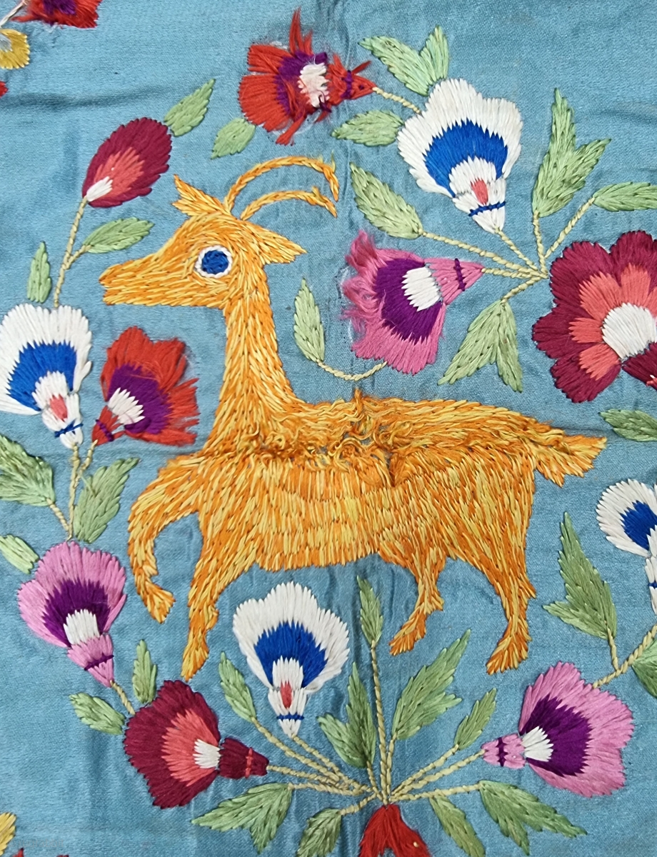 An Fine Floral Embroidery and Figurative Wall Decoration , Silk Embroidery on the Silk , From the Chamba Region of Himachal Pradesh India.