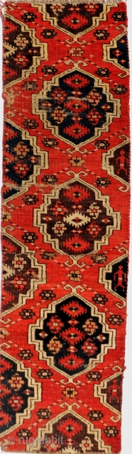 Turkmen Chodor Main Carpet fragment 118 x 32 cm 3 man figures on the edge.