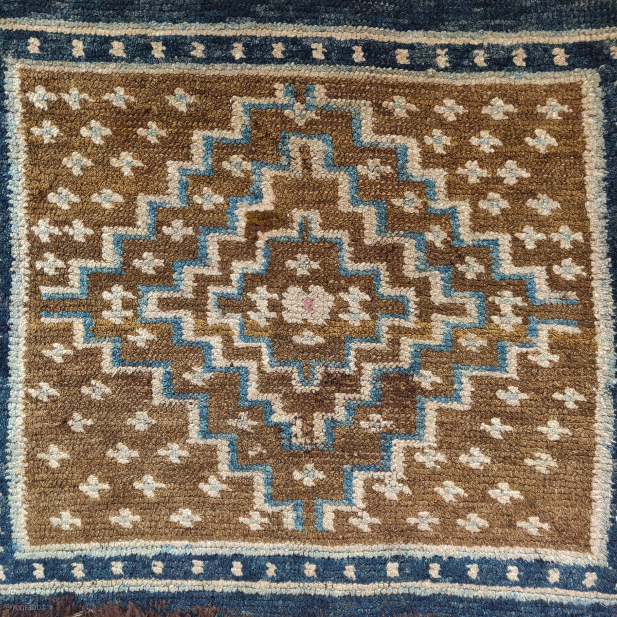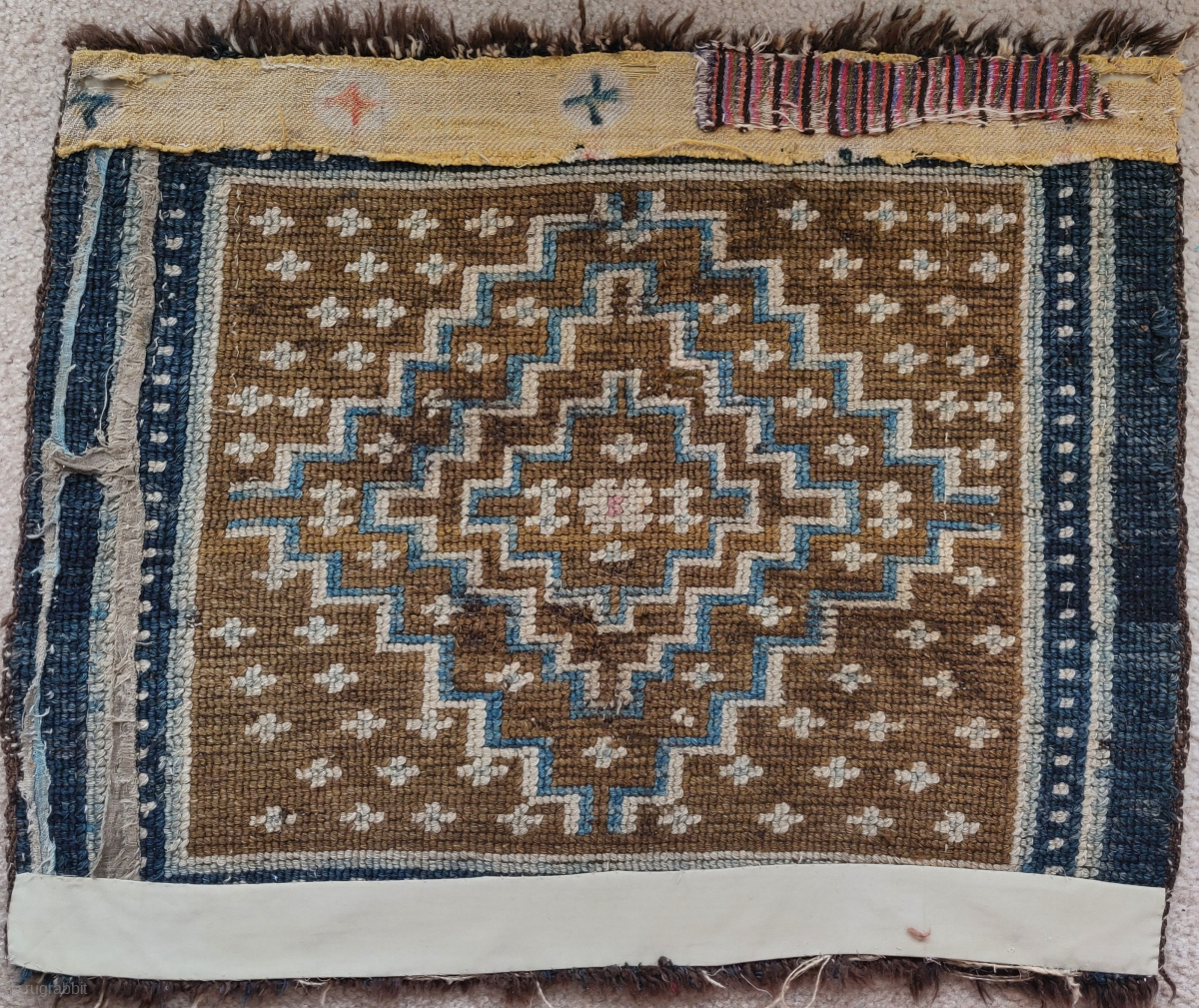 Tibetan square with a diamond design, 19th century?, tie-dyed textile strip sewn onto back