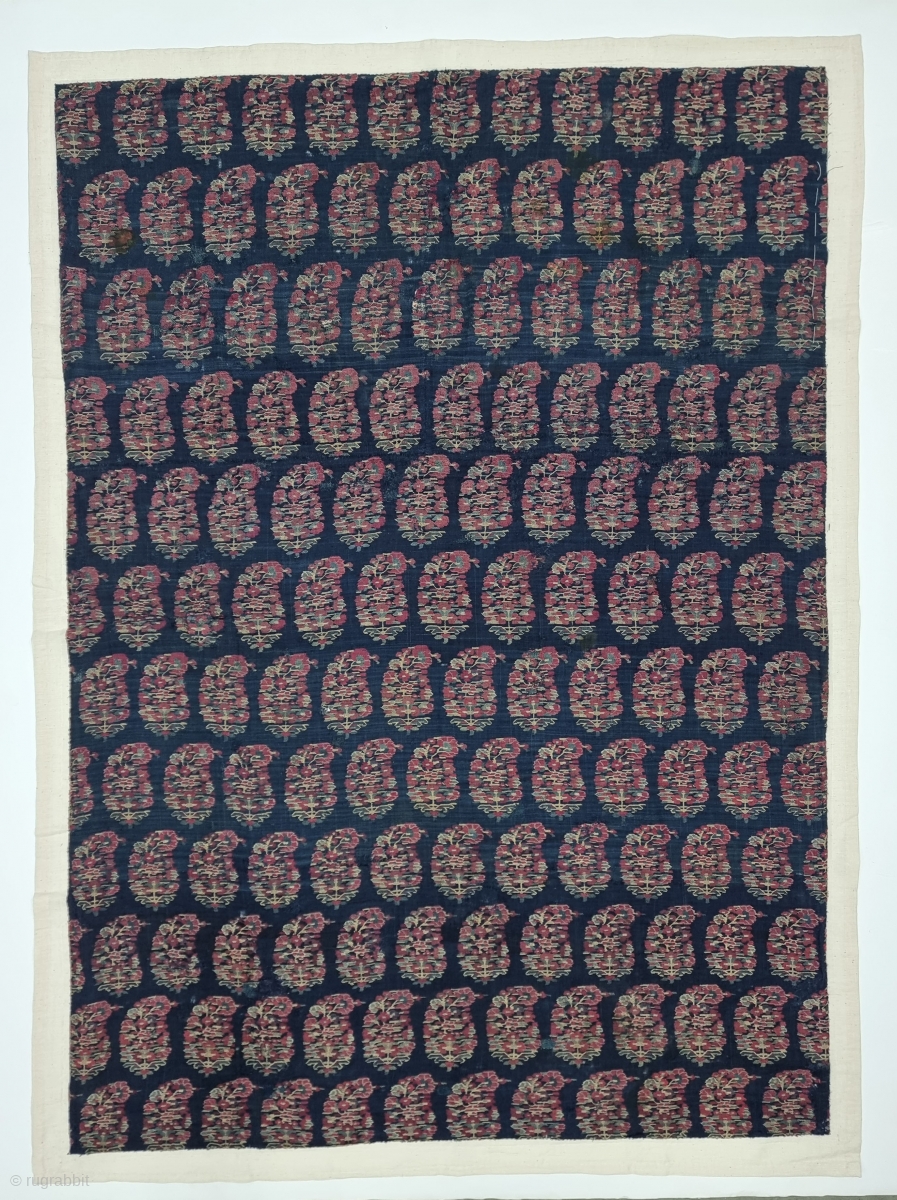 An Unique And Rare Indigo Blue Ground Color, Jaipuri Kani Jamawar Fragment From Kashmir, India.