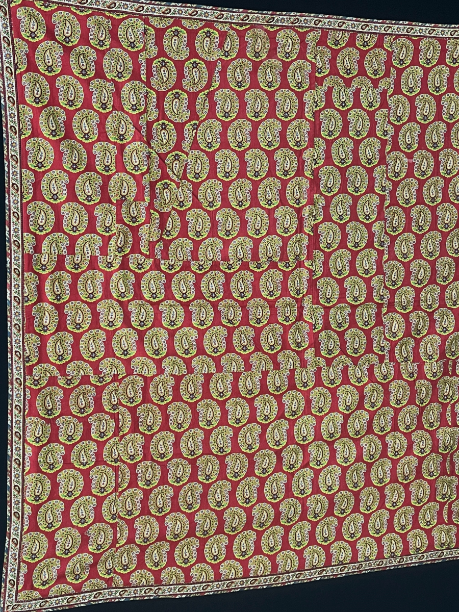İndia Antique Block Print Fragments Turned into a Bokhca with Boteh Design. Very Fine Printed Backing. Circa - 1900s. Size - ''90 cm x 90 cm'' turkmansilver@gmail.com.