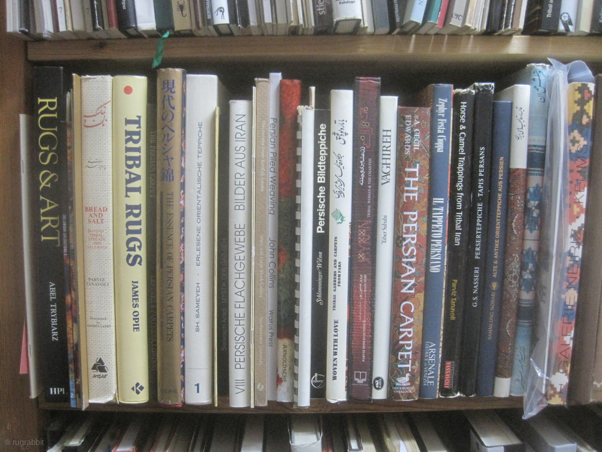 Books on Persian rugs: ca. 150 books and catalogues on Persian rugs, flatweaves and textiles with many rare and unusual publications. Please ask for my list with particluar prices (excel or pdf).