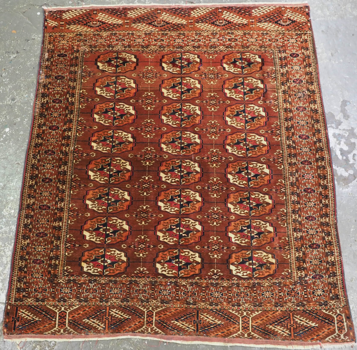 £500 / $635 Tekke Turkmen 'dowry' rug in as found condition. Size: 147 x 125cm (4ft 10in x 4ft 1in). Hand washed and ready for use or restoration. £500 / $635 + shipping at cost. Please contact for more images simon@knightsantiques.co.uk