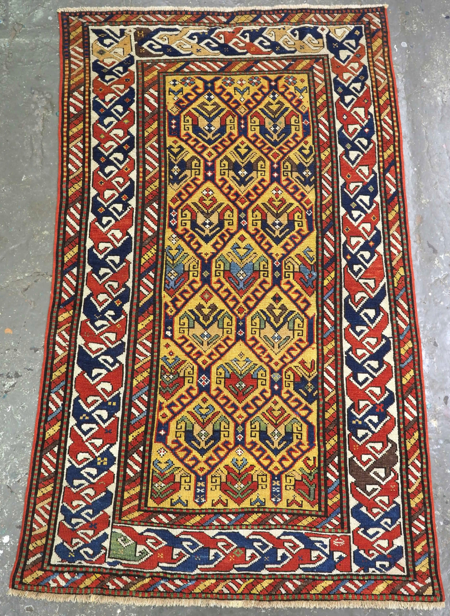 Small antique yellow ground Dagestan rug, size: 154 x 96cm.