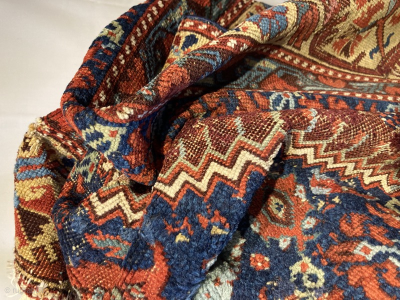 Early 19th centuey Kula rug fragment, missing outer border. Full of old repair.