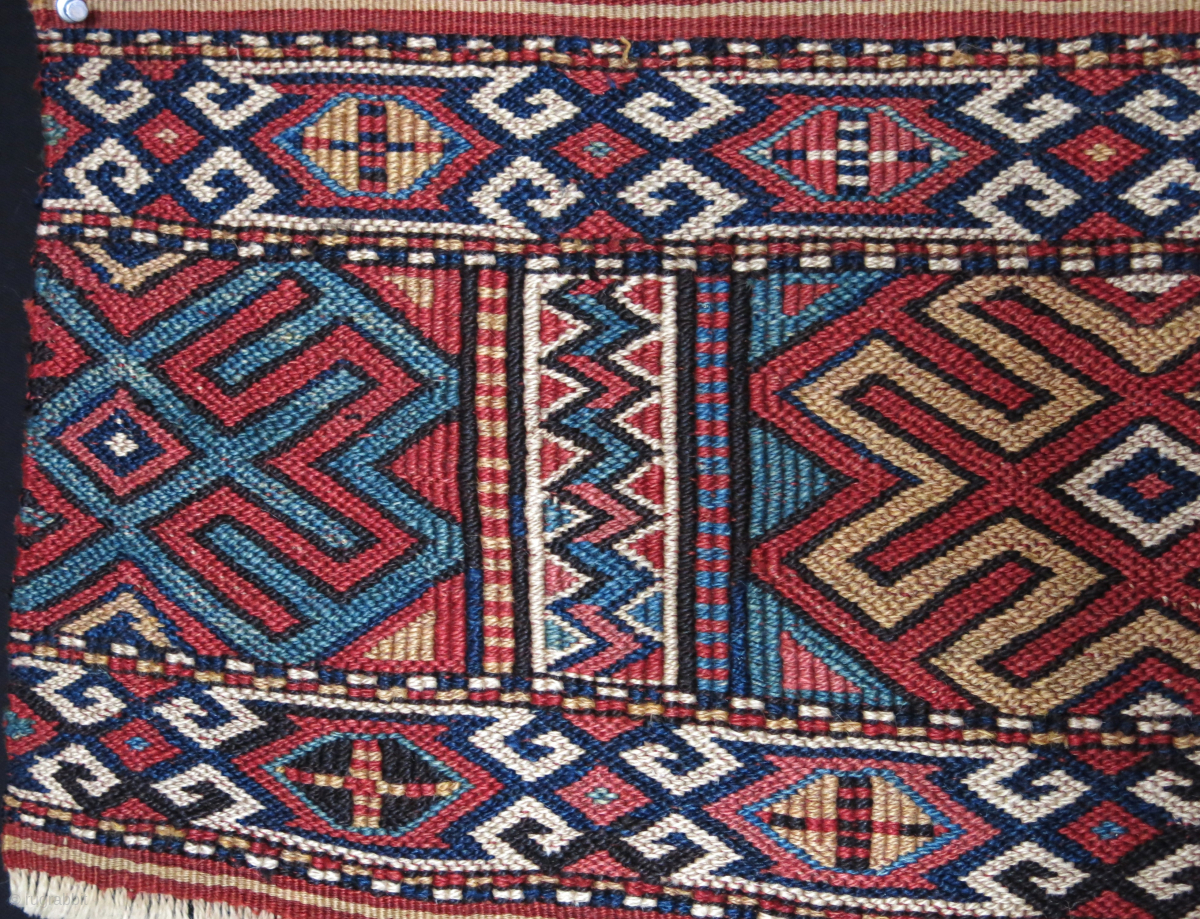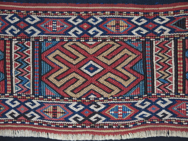 Shahsavan sumak mini bedding bag side panel.. saturated colros with great patina and condition. Size : 33" x 13" - 84 cm x 33 cm vedatkaradag@gmail.com