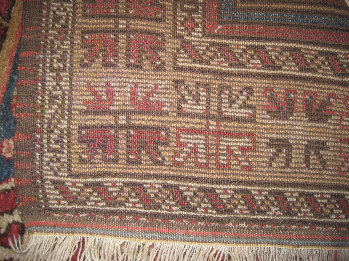 The black knots are oxidized. The knots, the warp and the weft threads are hand spun lamb wool. The salvages are woven on eight lines with brown and warm rust wool, thick pile, in perfect condition, the fringes are rebuilt with 2 cm kelim, the background color is warm rust, the surrounded large border is yellow, rare example, soft and high standard quality.