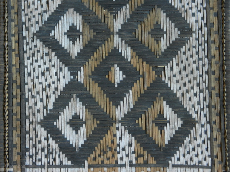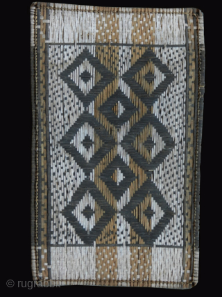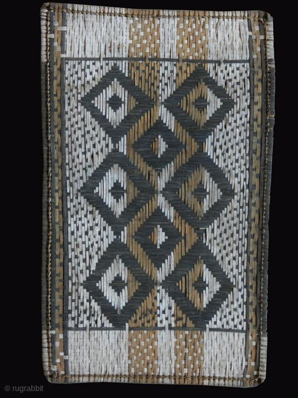 Ritual mat Loosa cod. 0701. Wicker and flat stripes of bark fiber. Mongo / Mbole people. Democratic Republic Congo. Circa 1930. Dimension cm. 53,5 x 32 (21” x 11.5”). Very good condition