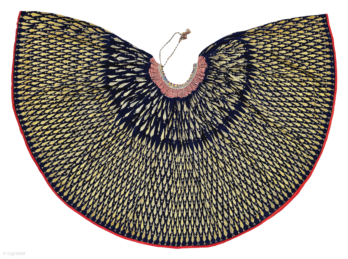 Rare Indigo Blue Wheat Design Phulkari Embroidery Ghaghra (Skirt) Indigo-Dyed Cotton Embroidered in floss silk.