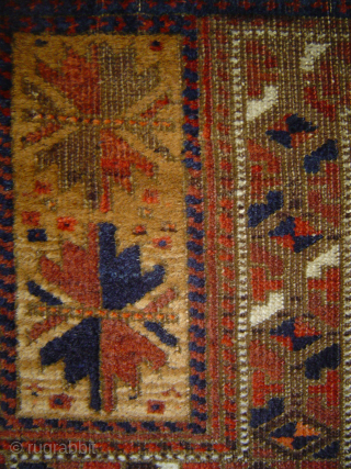 Baluch Bonanza #2: detail of exemplary, classic antique Baluch prayer rug, 3 Trees on Camel Field speckled with many small particles,31 x 51 inches / 78 x 130 cm. Luscious wool in shades of caramel and cafe au lait. -- Please check out my other Baluches posted here and inquire: johnbatki@gmail.com
