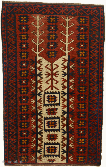 Kyrgyz ‘Ala’ Eshik Tysh (tent door covering), Ferghana Valley, Ichkilik Tribe, late 19th century, 145 cm x 87 cm, in excellent condition. This type of Ichkilik pile weaving is scarce.