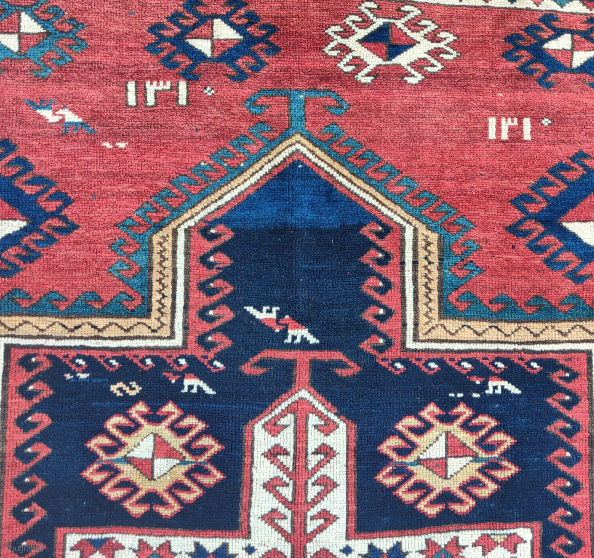 Fakhralo Kazak rug with Sevan influences. Dated 1310 (1892). All good colors, lustrous wool, nice handle. 4'6"x5:7"