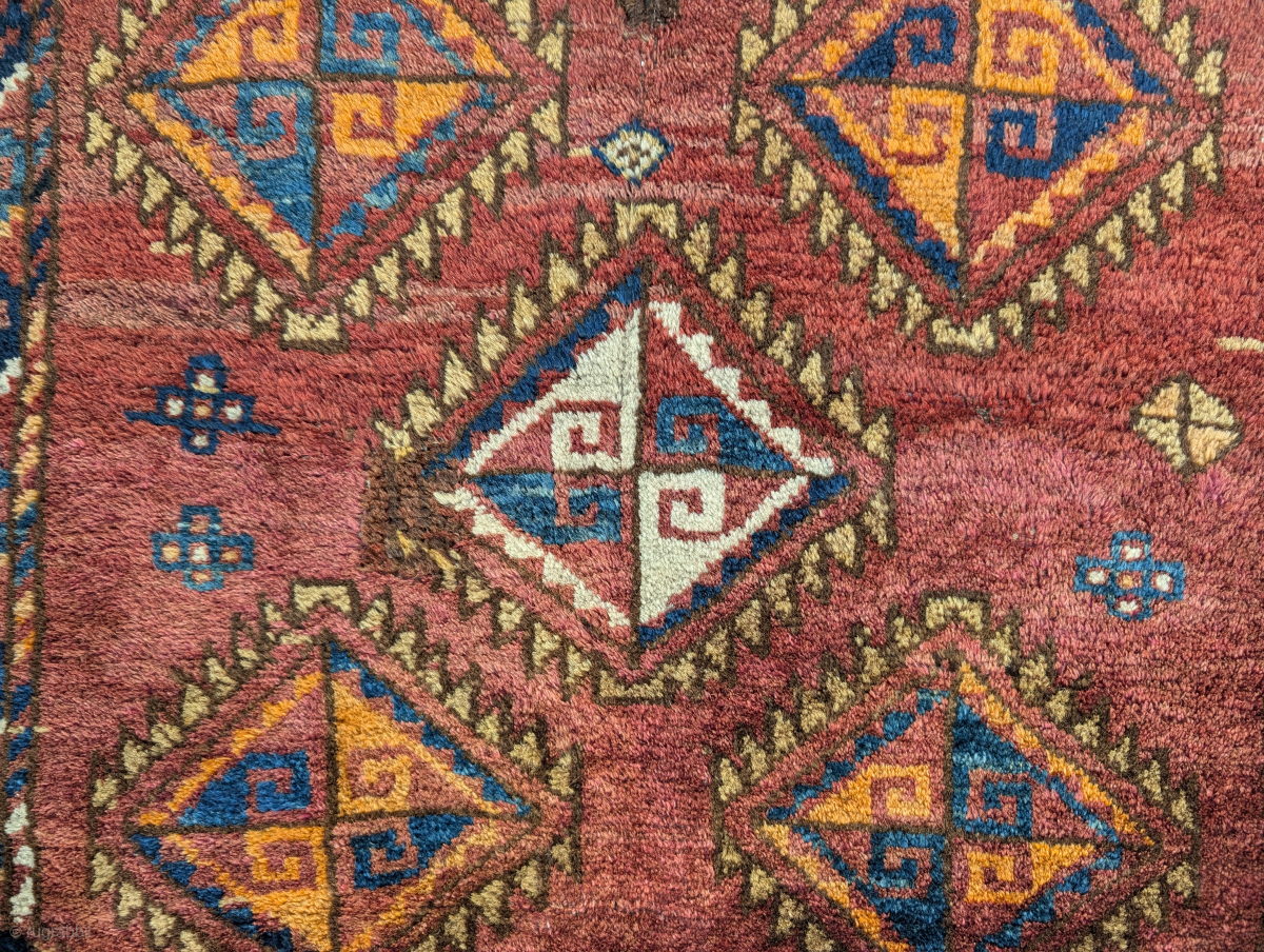 Antique Uzbek saddle rug. Thick, full, and soft pile with natural dyes. There's one repair near the center but in great condition. Recently washed. Please contact me at steven.malloch@gmail.com or gerrerugs@gmail.com for questions or for purchase. Cheers!