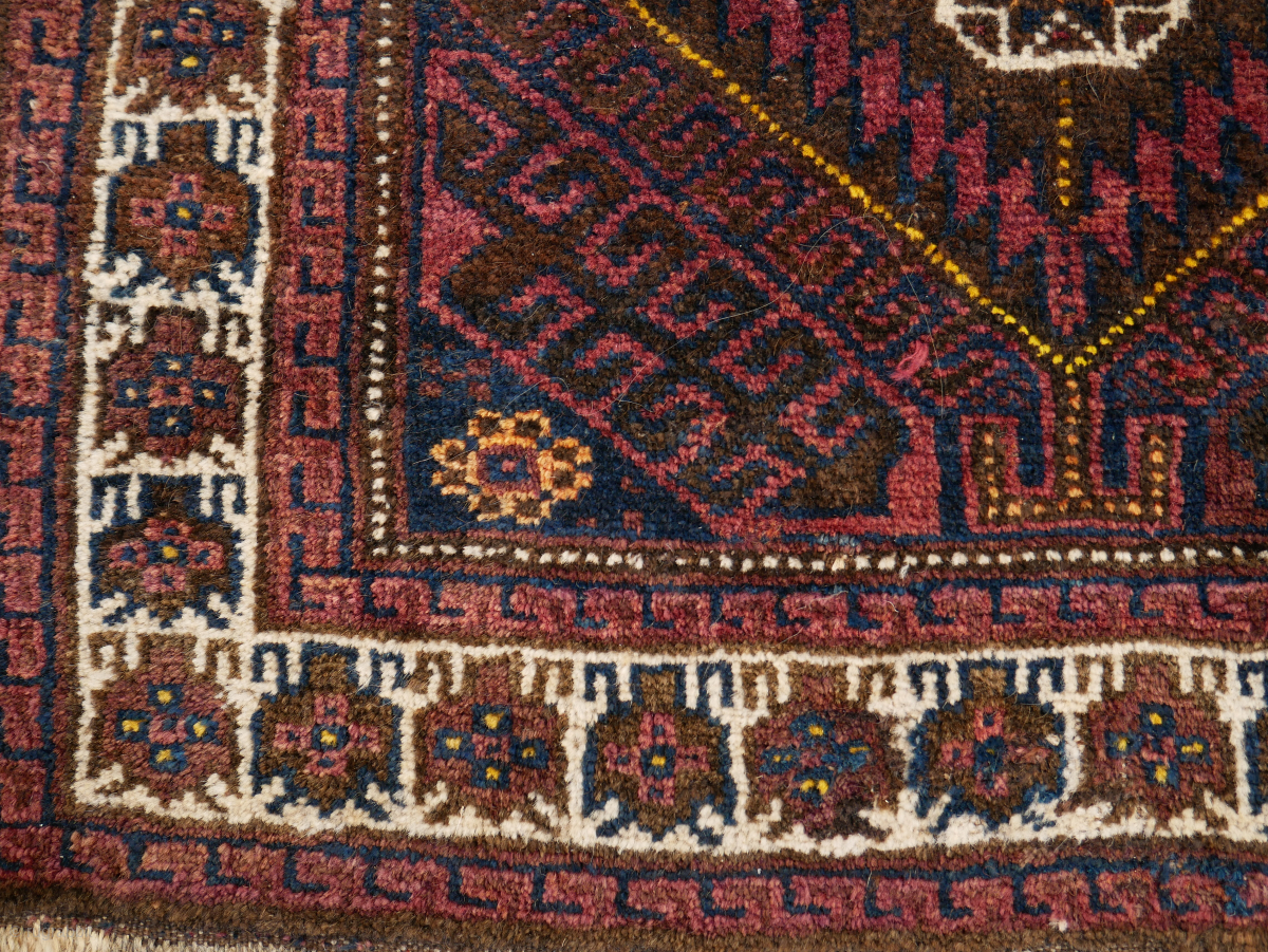 Mushwani Baluch bagface with rare insect border, beautiful aubergine.