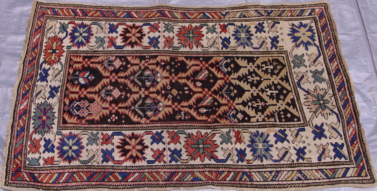 Antique Caucasian Genje rug circa 1860-1880s, size is 2'11" x 4'7" ft. (89 x 140 cm.)