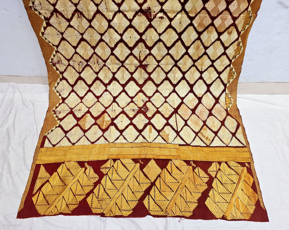 Chand Bagh , Phulkari From West(Pakistan) Punjab. India. India. untwisted Floss silk on hand spun (Halwan) cotton ground cloth.