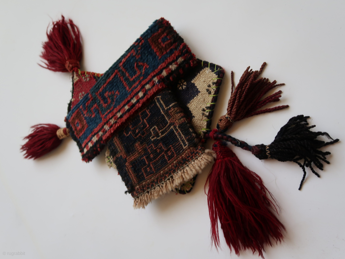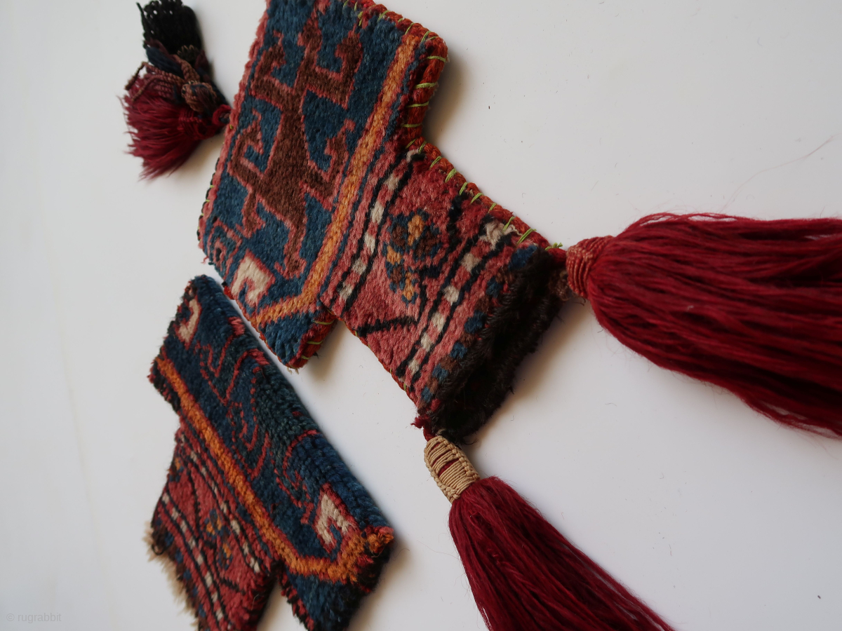 Several bags ( ? ) fragmented, Luri ? . Ca : 24 cm . x 29 cm.( first, left. ) 31 cm . x 22 cm . ( second ,right.)