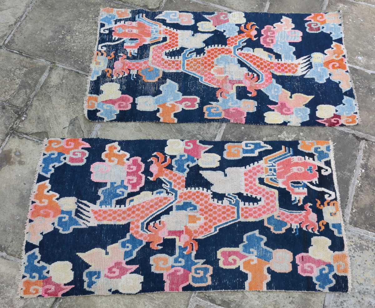 Pair of Tibetan dragon carpets