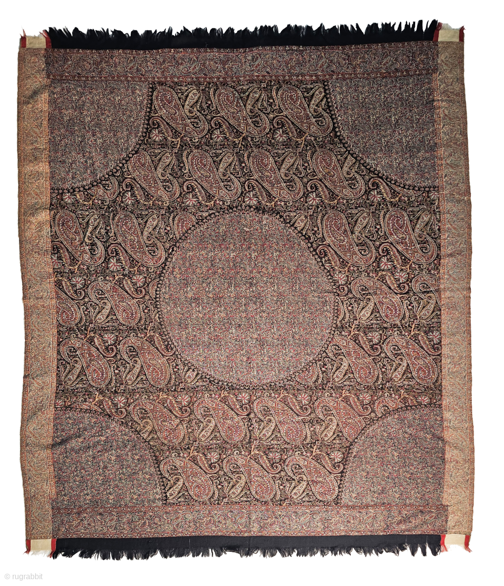An Rare Kari(Paisley) Design Kani Moon Shawl From Kashmir, India.