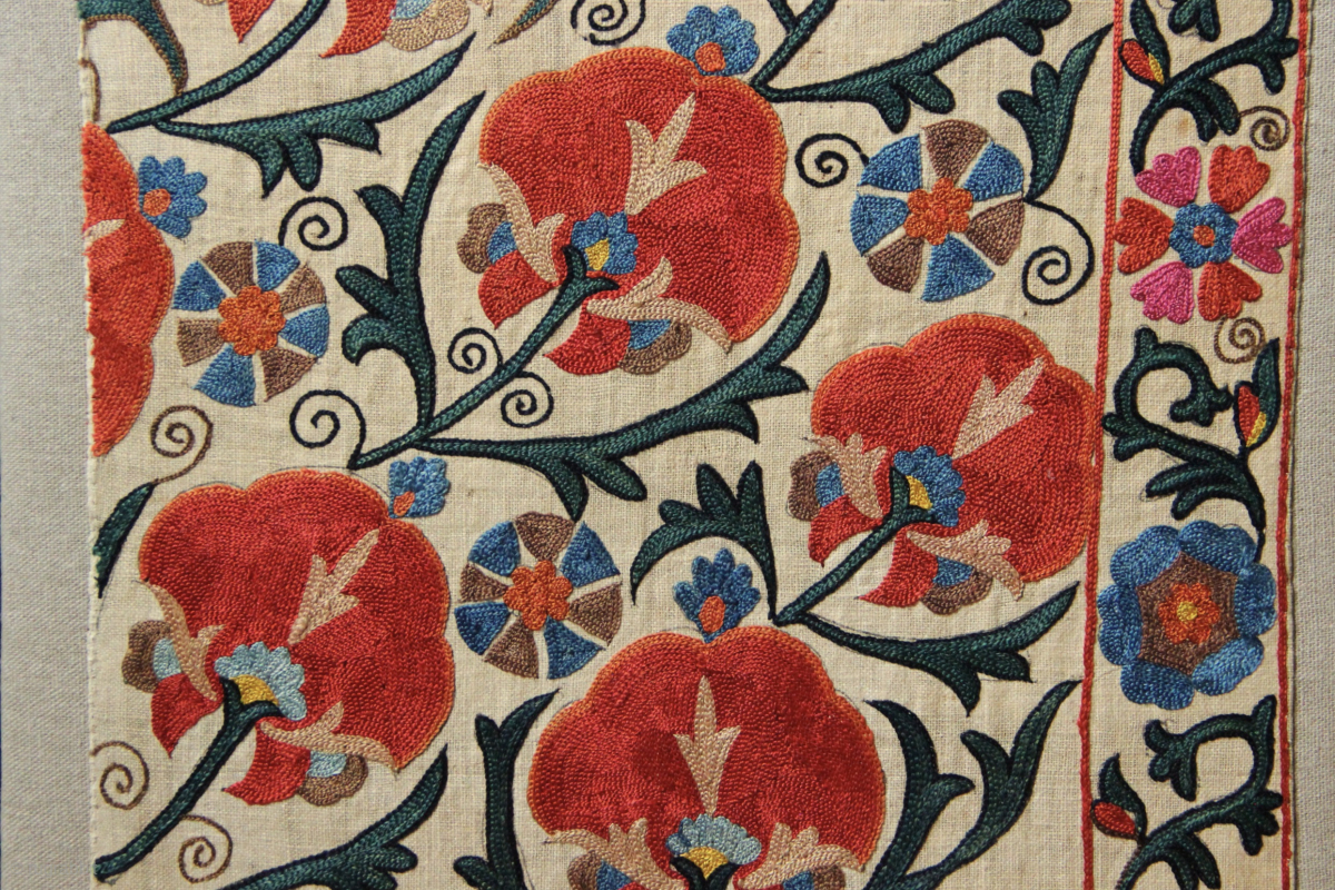 Mid 19th century Nurata Suzani fragment, beautifully mounted.