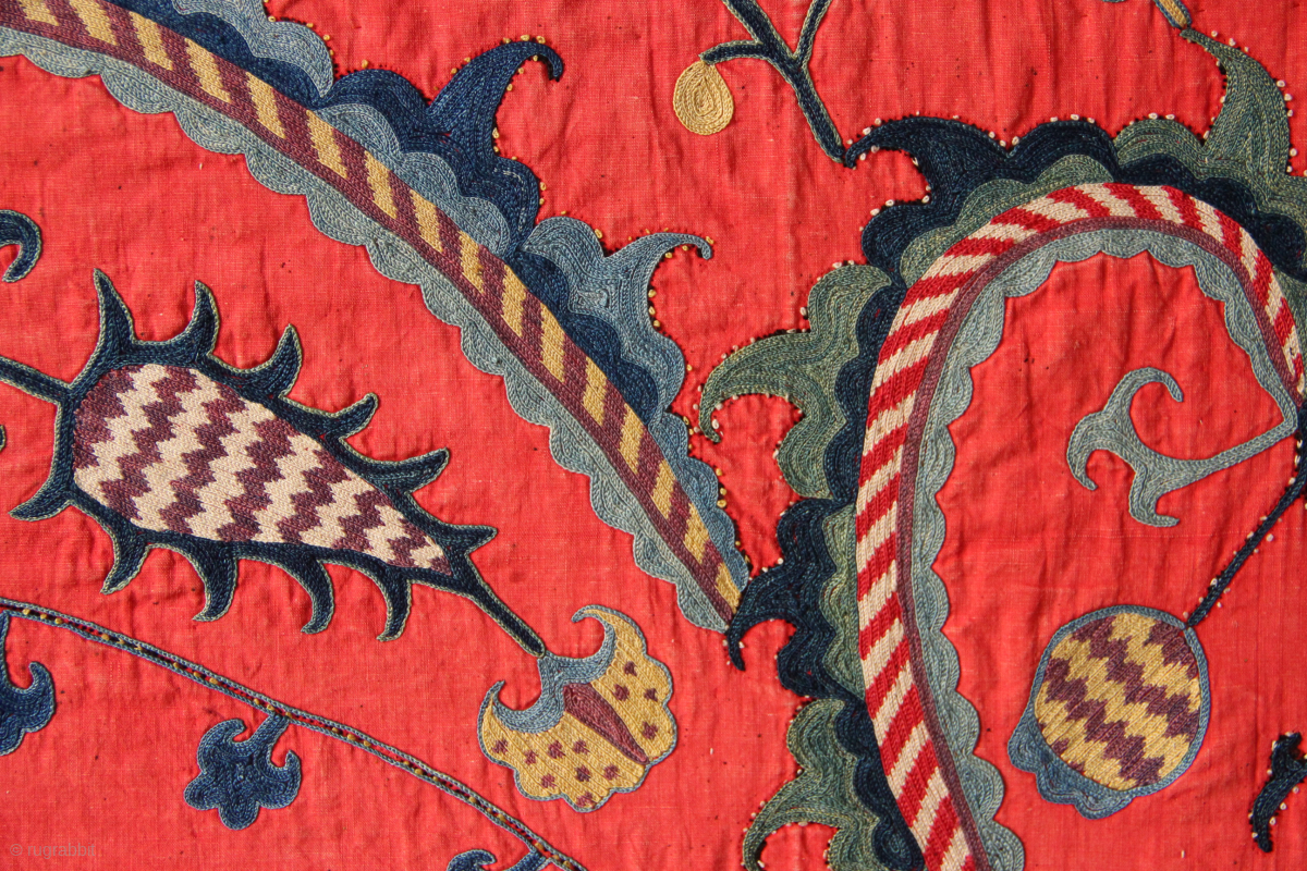 Mid 19th century Shahrisabz nim suzani with prayer arch. Superb embroidery work. Currently mounted onto a board which i will remove when sold.