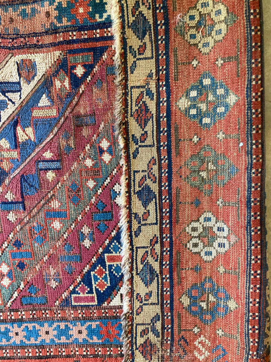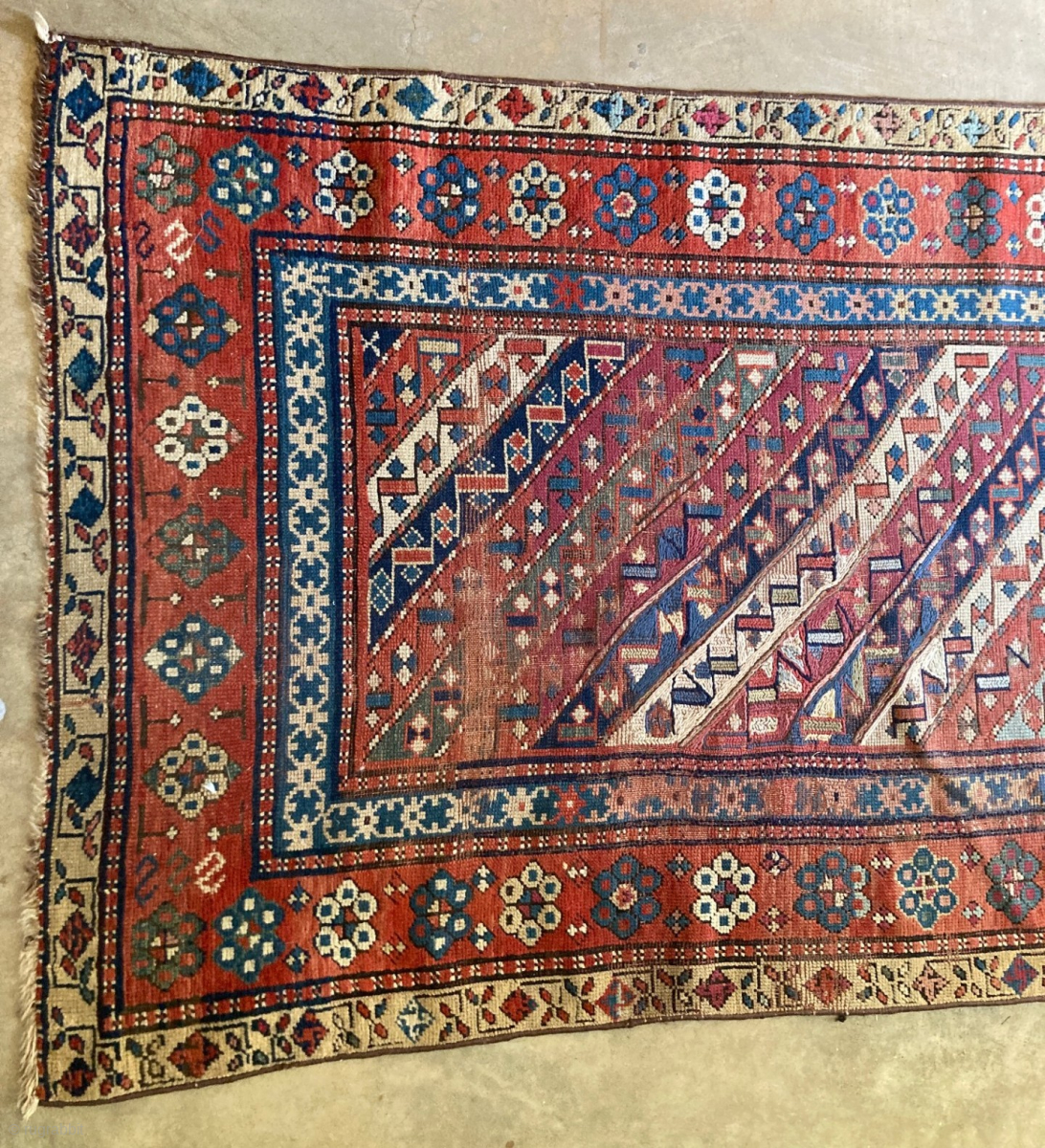 Antique Caucasian Gendje 3'5" x 8'10". Obvious wear and old repairs but still has excellent colors. Contact me directly at l_g_gerber@yahoo.com. por
