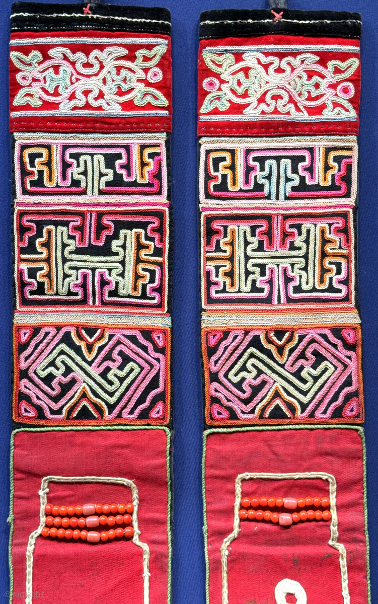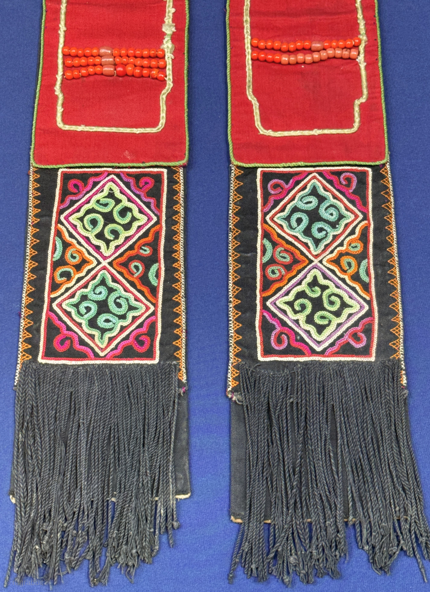 Tibet Antique pair of Chinese silk embroidered hanging decorations with coral and tassels. The old hand embroidery demonstrating extremely fine craftsmanship. Size - 45.5'' x 4'' - ''115 cm x 10 cm'' turkmansilver@gmail.com.
