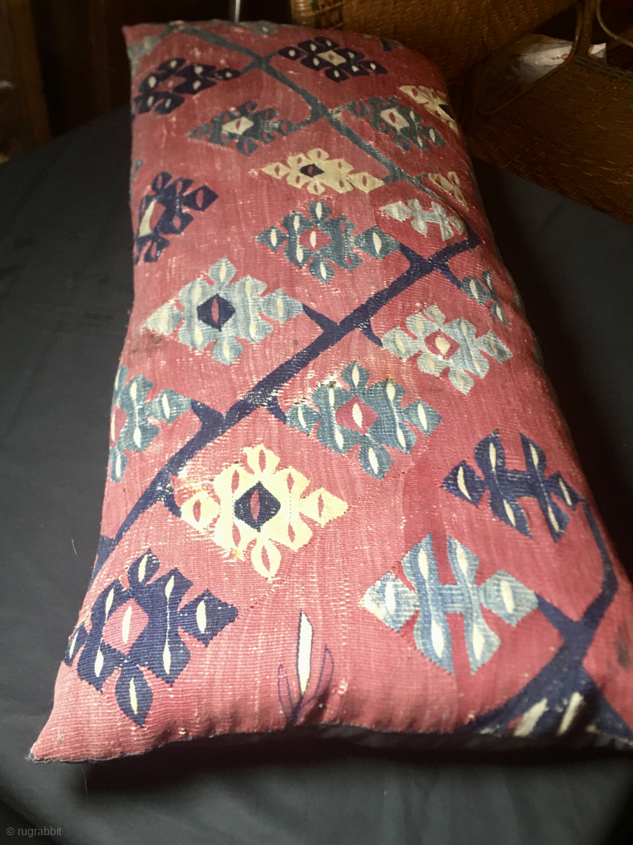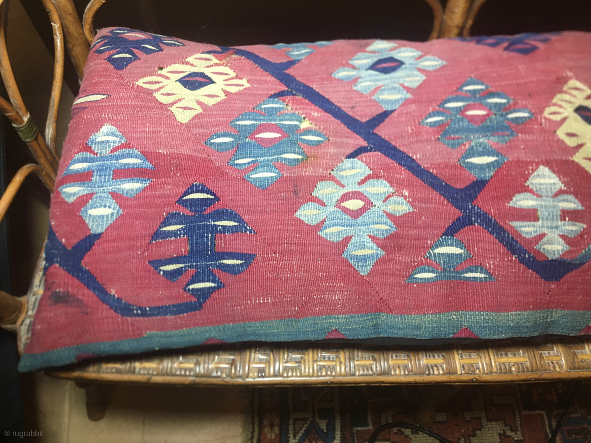 This lovely cushion was made with an antique & wonderful Sarkoy kilim fragment.