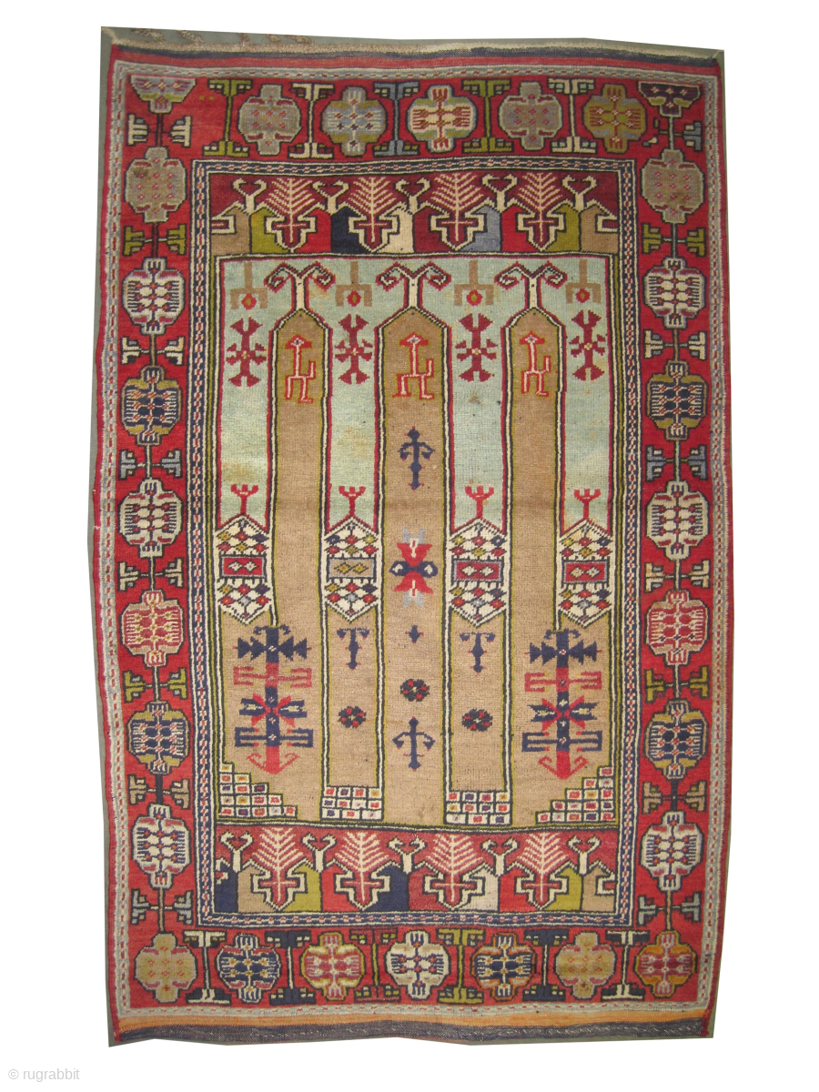 Karaman prayer Turkish, knotted circa 1925 antique, 110 x 164 cm, id: K-3601