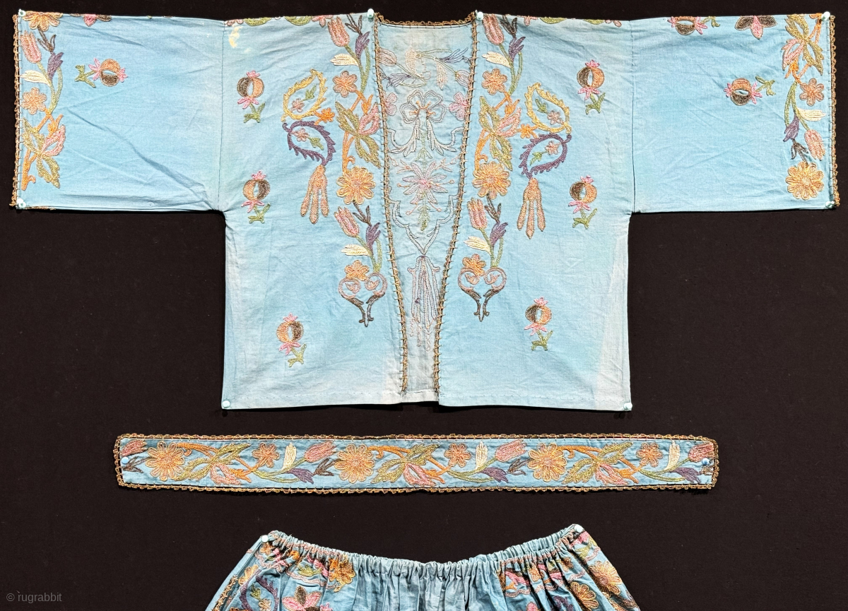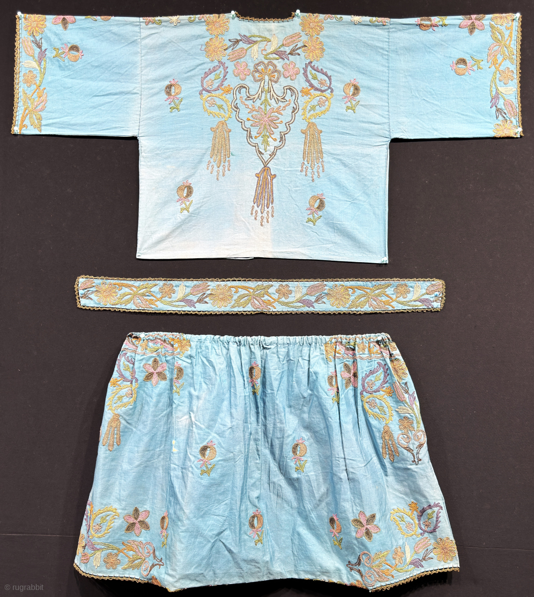Syria Aleppo Ottoman style ceremonial child outfir. Silk and soft metallic embroidery with Ottoman motifs. Circa - 1900 or earlier.